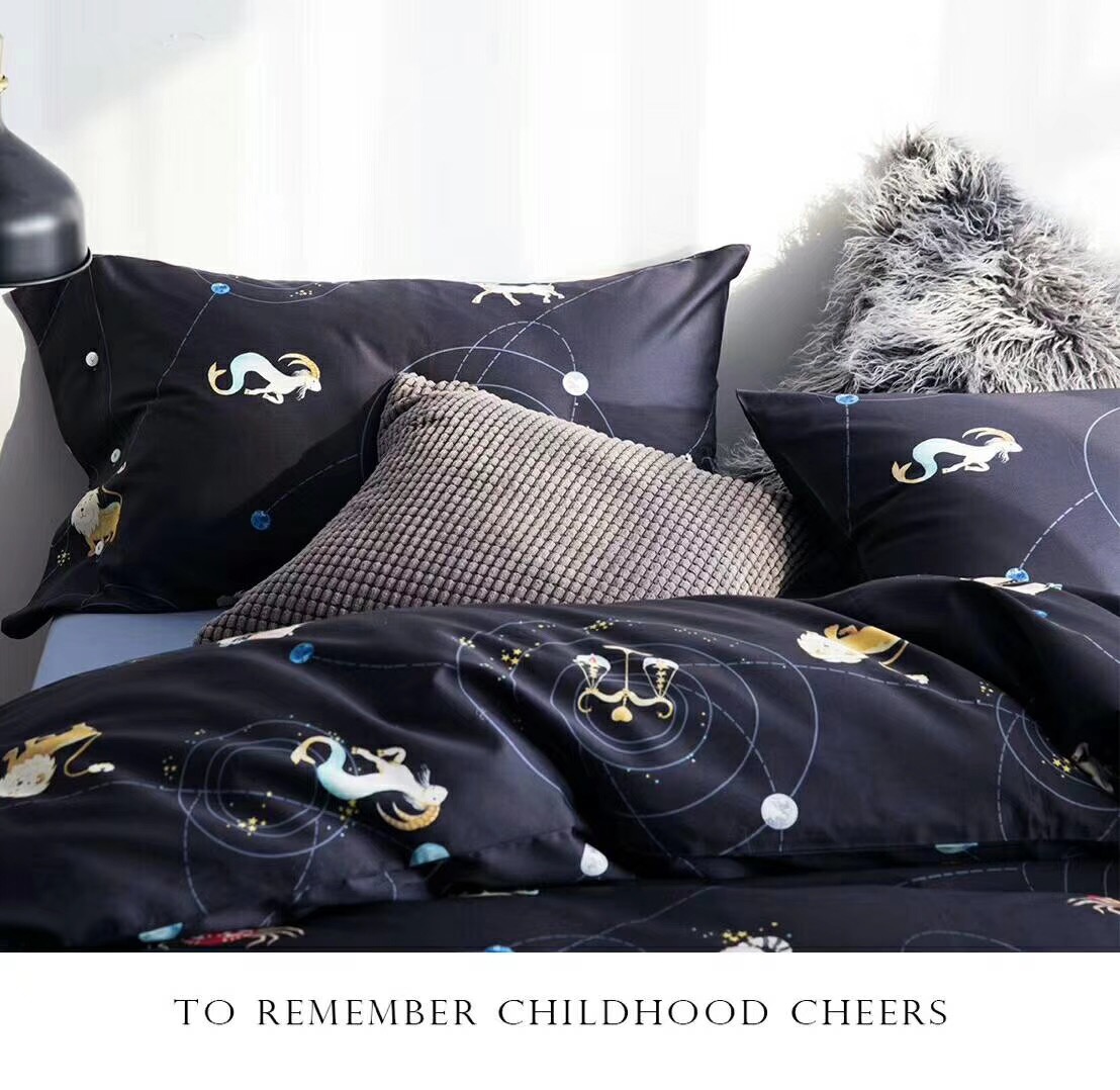 Þessi rúmföt eru með myndum af stjörnumerkjum og öðru skemmtilegu. 100% bómullarsatín.
