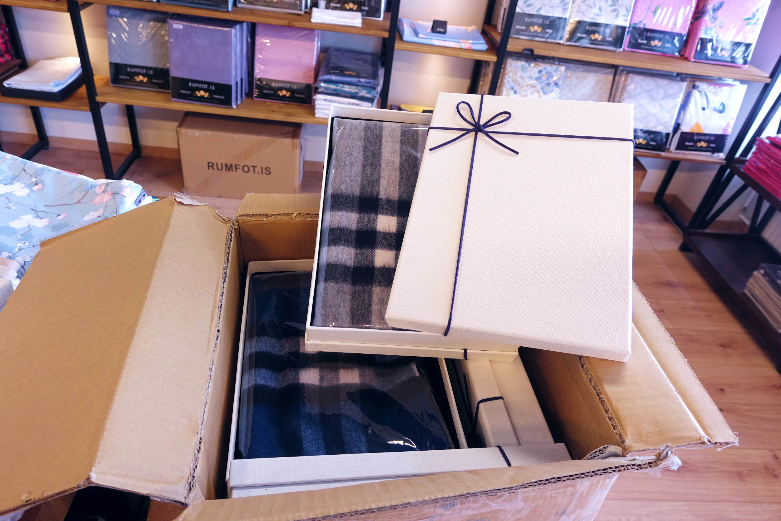 Jæja, loksins! Prufurnar sem ég pantaði á Heimtextil í Frankfurt voru að lenda. Mjög flott ullarteppi og treflar í nokkrum útgáfum. Treflarnir eru úr Kasmírull og teppin úr annað hvort blöndu af Kasmírull og ástralskri ull eða 100% ástralskri ull.