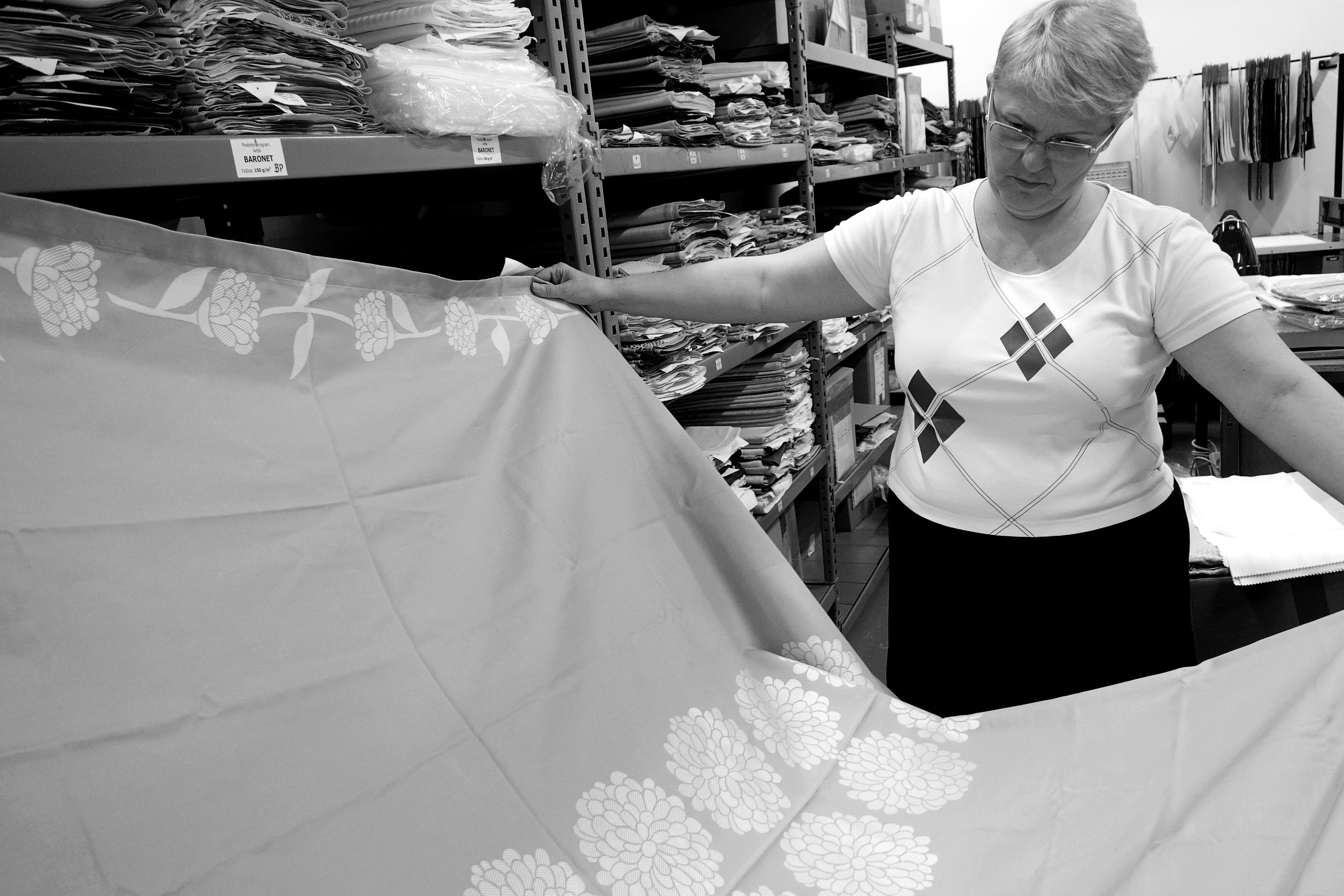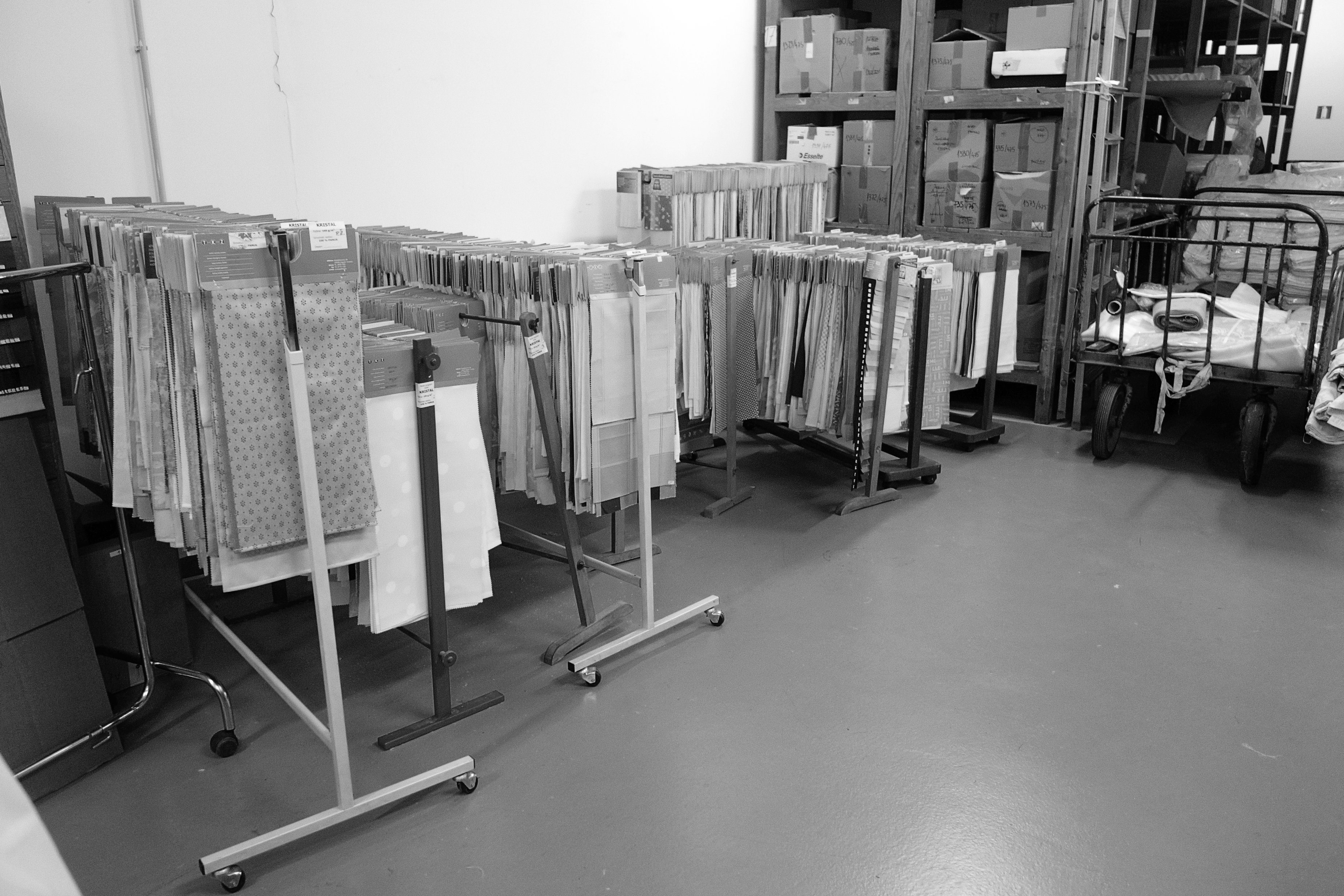 Ég fékk að hitta verksmiðjustjórann sem gaf sér góðan tíma í útskýra hvernig allt virkaði.  Ef ég man rétt þá voru eitthvað í kringum 20 vefstólar í húsinu af mismunandi gerðum.  Sumir voru bara notaðir til að vefa sérvéttur meðan aðrir gátu ofið allt að 3m breið efni.  Flestir voru notaðir til að vefa dúka í breiddum frá 120-180cm.