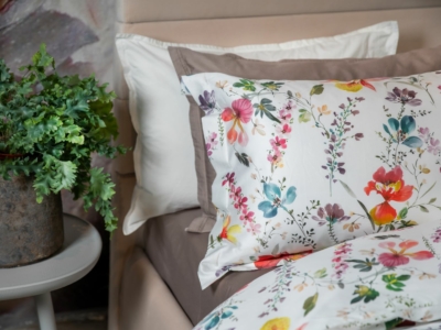 Rúmföt úr áprentuðu satíni. Rumfot og koddaver. 300 þráða rúmföt.