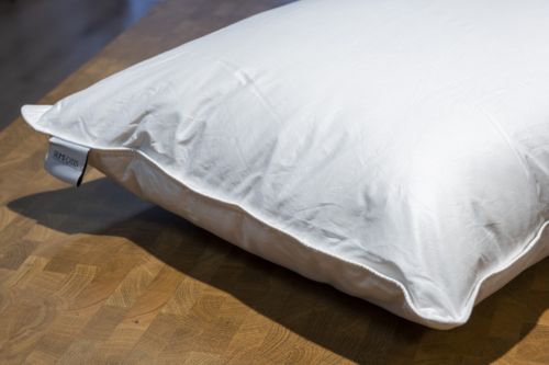 Eðalfínn 3ja laga koddi. Smáfiður í miðjunni og síðan gæsadúnn næst höfðinu.