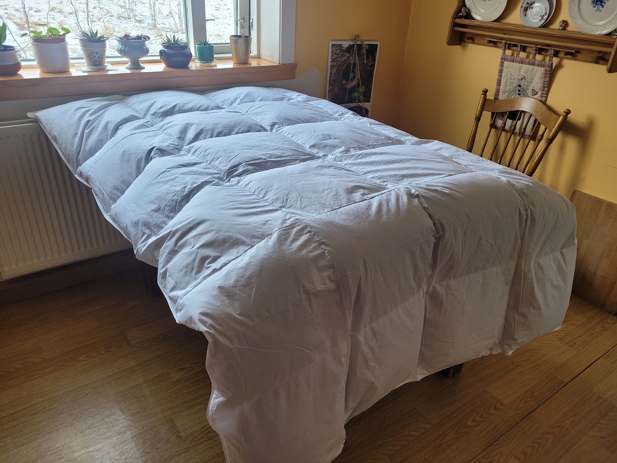Gæði sængur fer eftir þeim dúni sem notaður er og síðan ytra byrðinu. Þessi sæng er mjög létt en samt „fluffy“ og skrjáfar lítið.