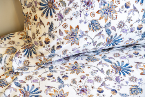 Koddaverið er lokað með vasa og með 4cm kanti á öllum hliðum. Sængurverinu er lokað með tölum og allar frágangur vandaður.