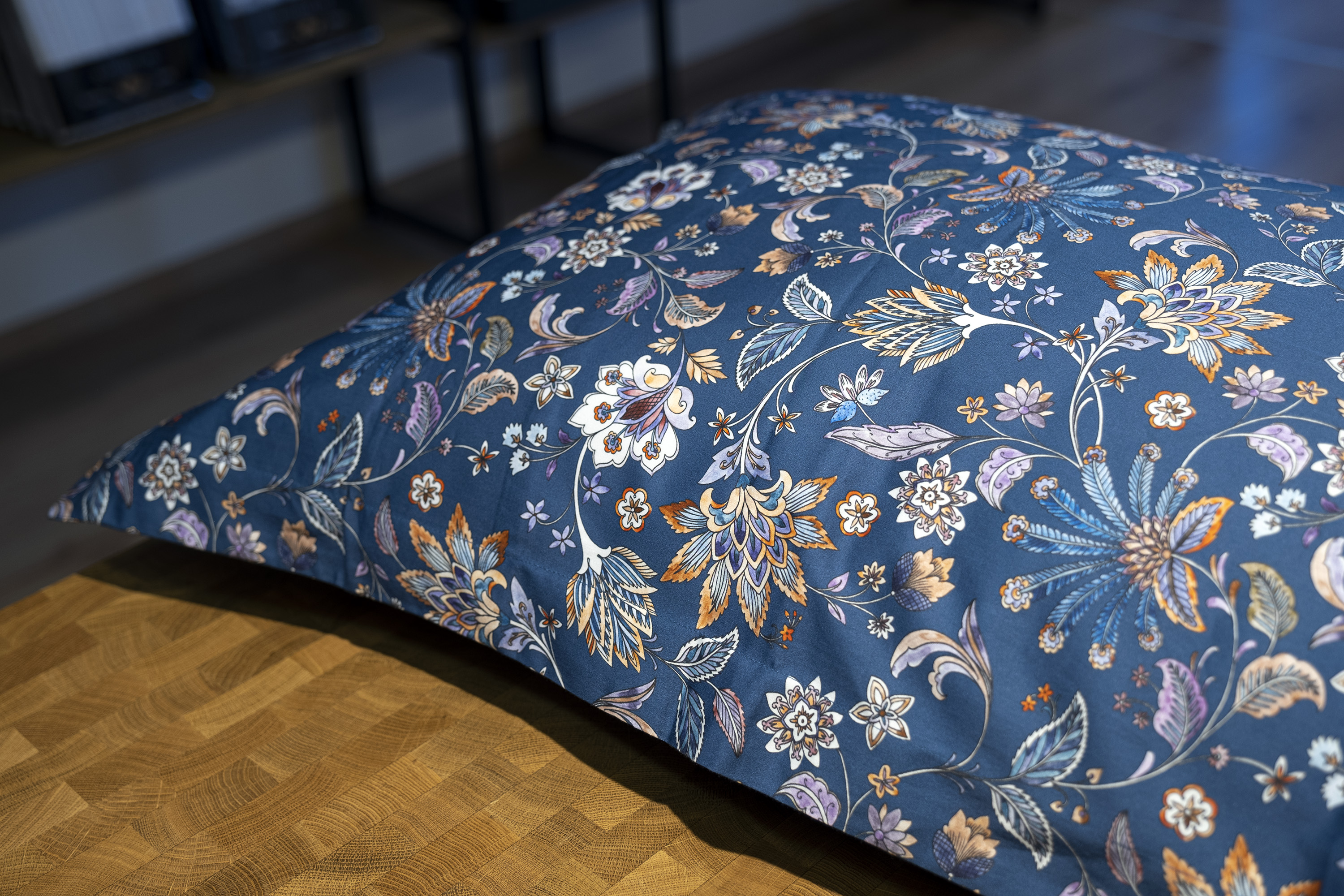 Koddaverið er lokað með vasa og með 4cm kanti á öllum hliðum. Sængurverinu er lokað með tölum og allar frágangur vandaður.