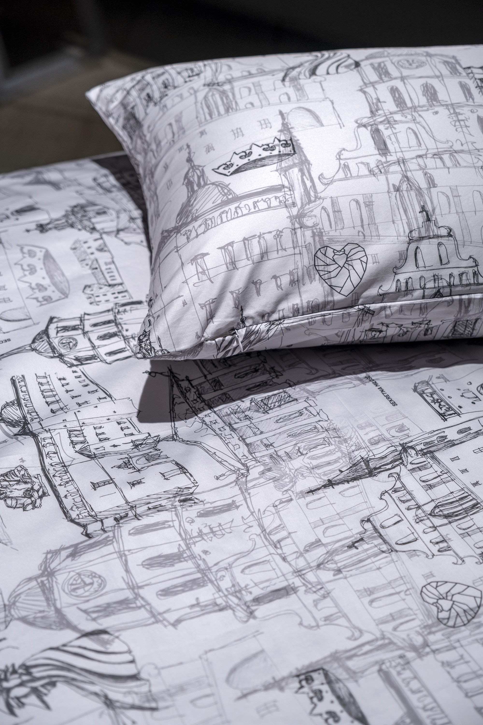 Áprentuð satínrúmföt úr egypskri bómull. Eru framleidd í Litháen af DecoFlux.