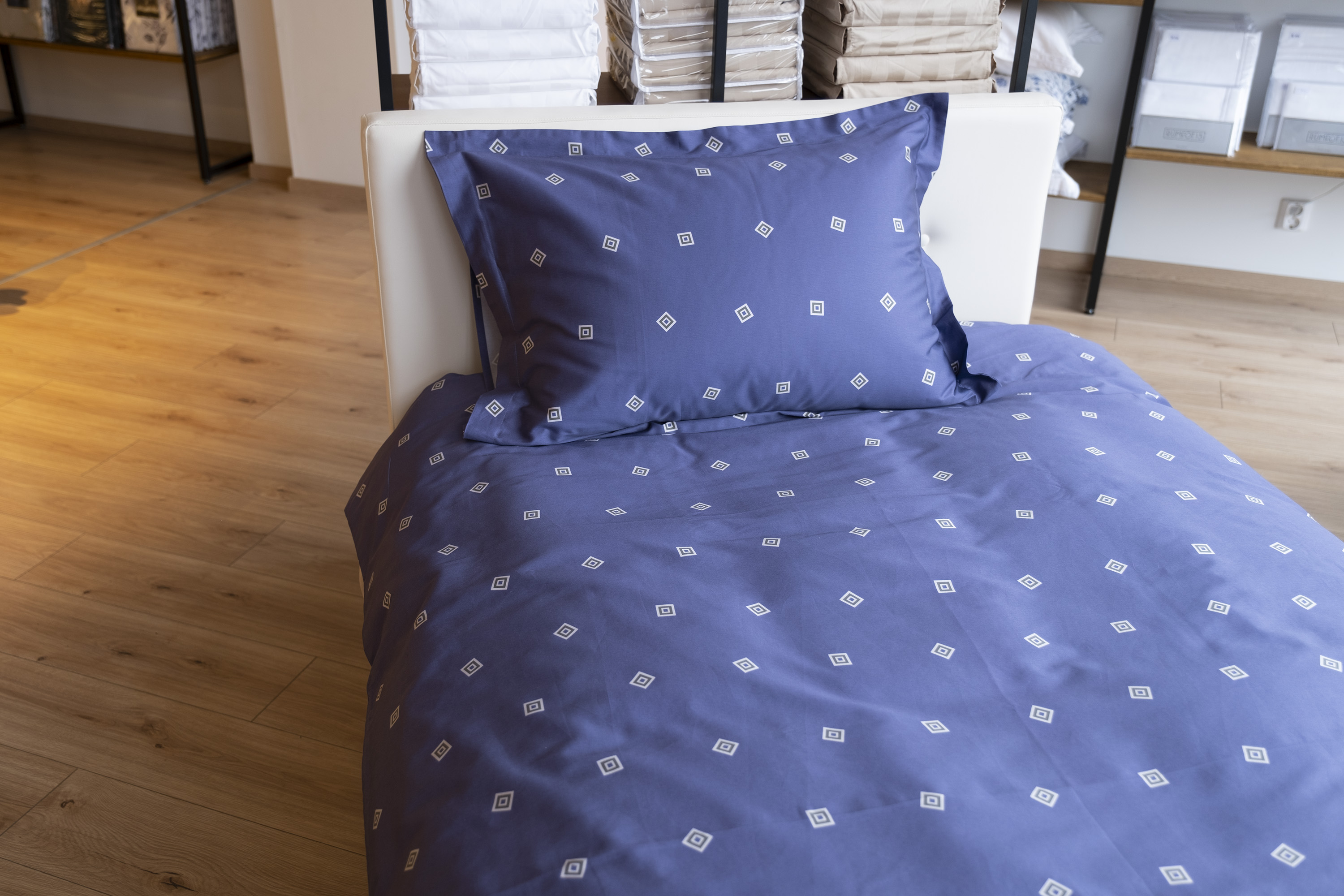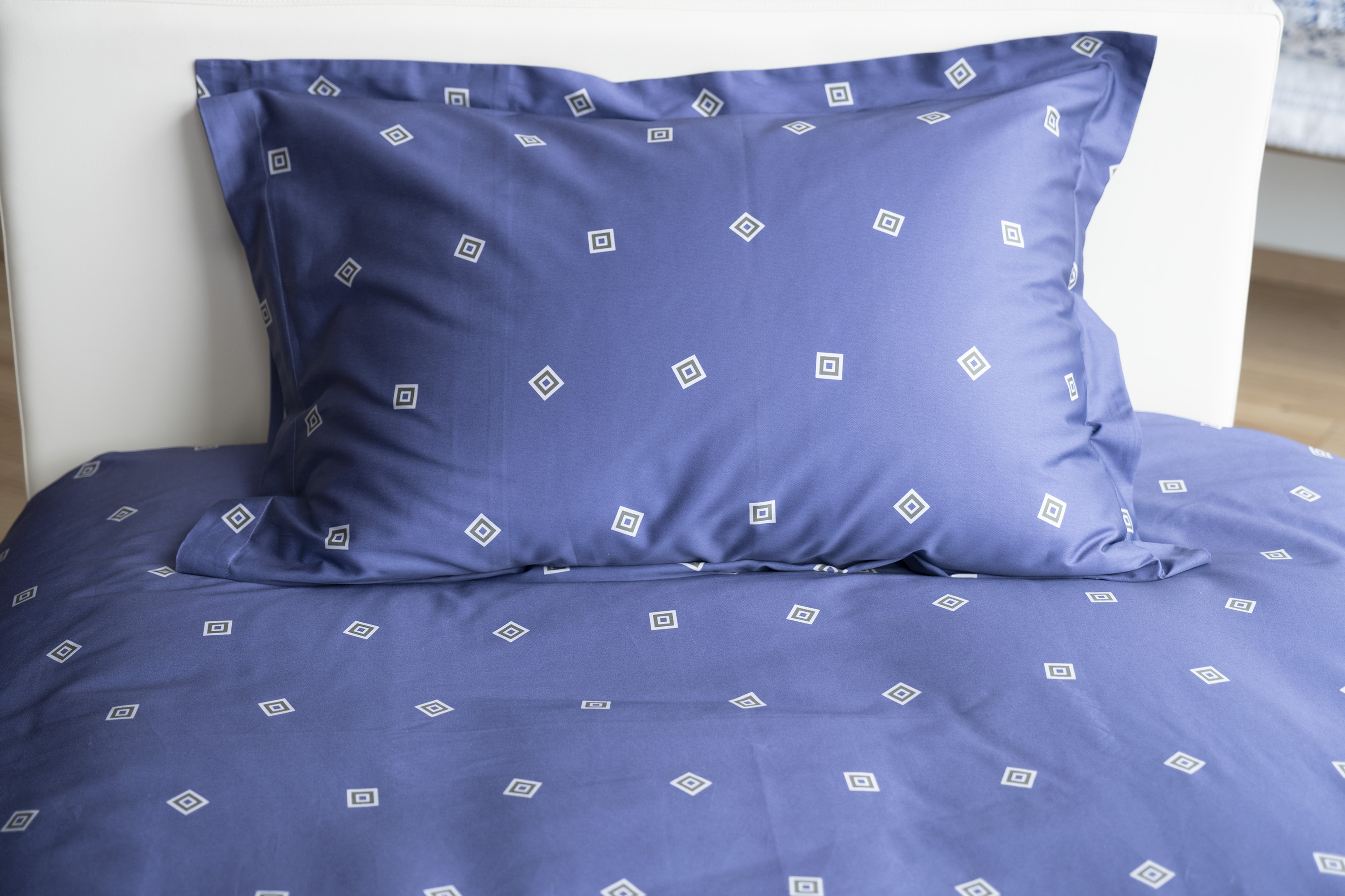 Koddaverið er lokað með vasa og með 4cm kanti á öllum hliðum. Sængurverinu er lokað með tölum. Líka hægt að fá aukakoddaver.