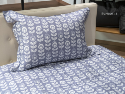 Koddaverið er lokað með vasa og með 4cm kanti á öllum hliðum. Sængurverinu er lokað með tölum. Líka hægt að fá aukakoddaver.