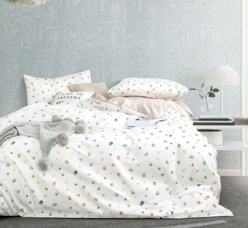 Rúmfötin eru úr 300 þráða bómullarsatíni.  Mjúkt og gott efni. Ljóst í grunninn með brúnum krúttlegum böngsum.