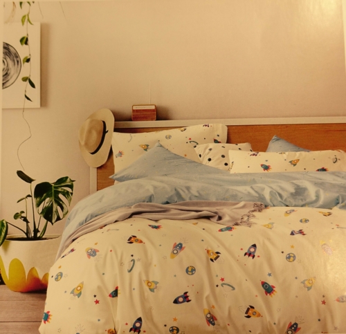 Ljóst efni í grunninn og geimflaugarnar eins á litinn.