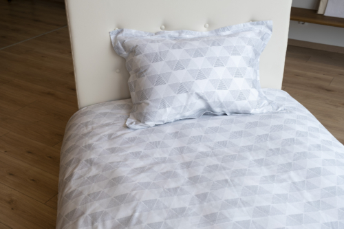Koddaverið er lokað með vasa og með 4cm kanti á öllum hliðum. Sængurverinu er lokað með tölum og allar frágangur vandaður.