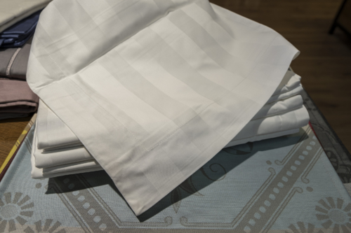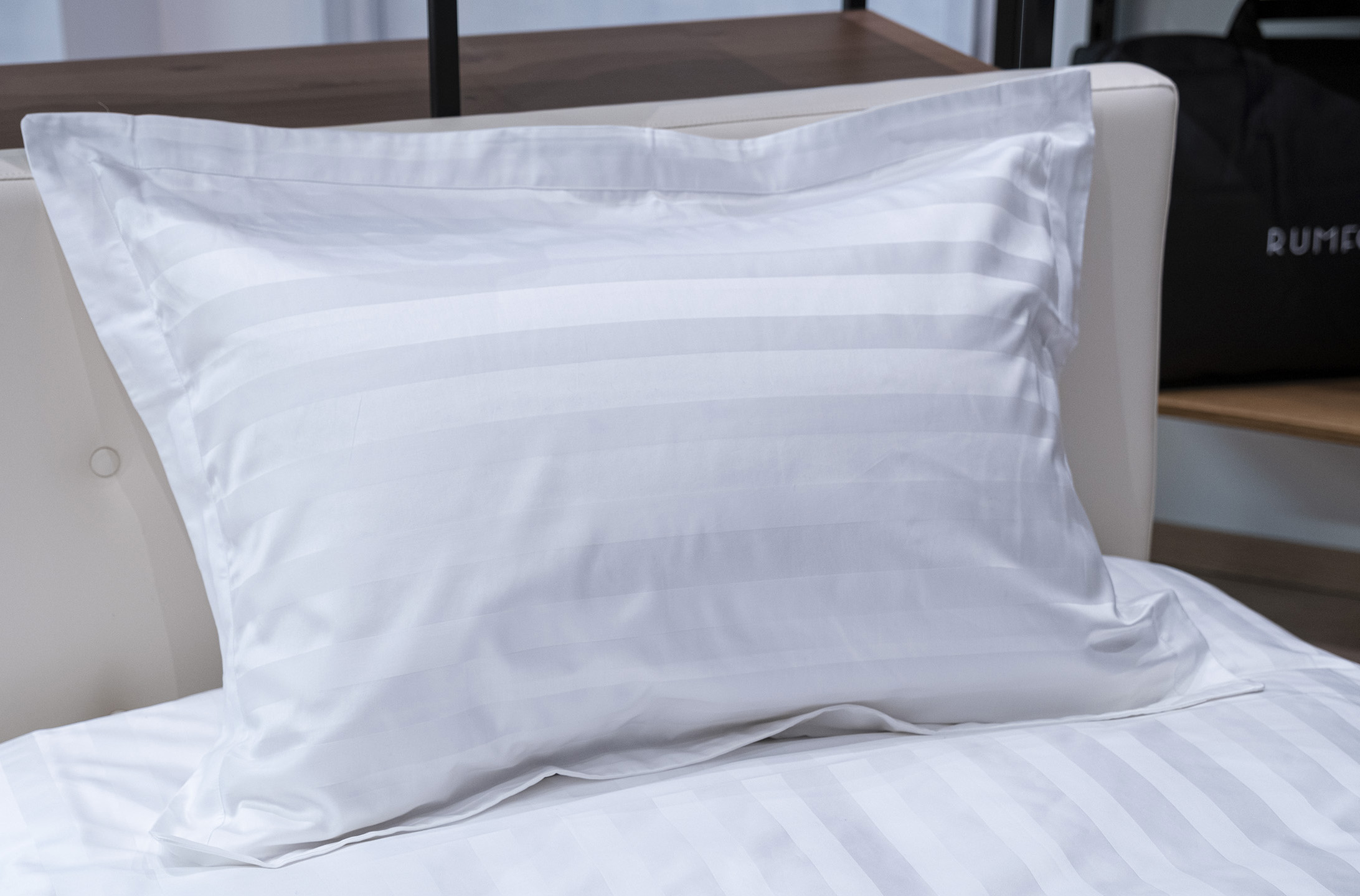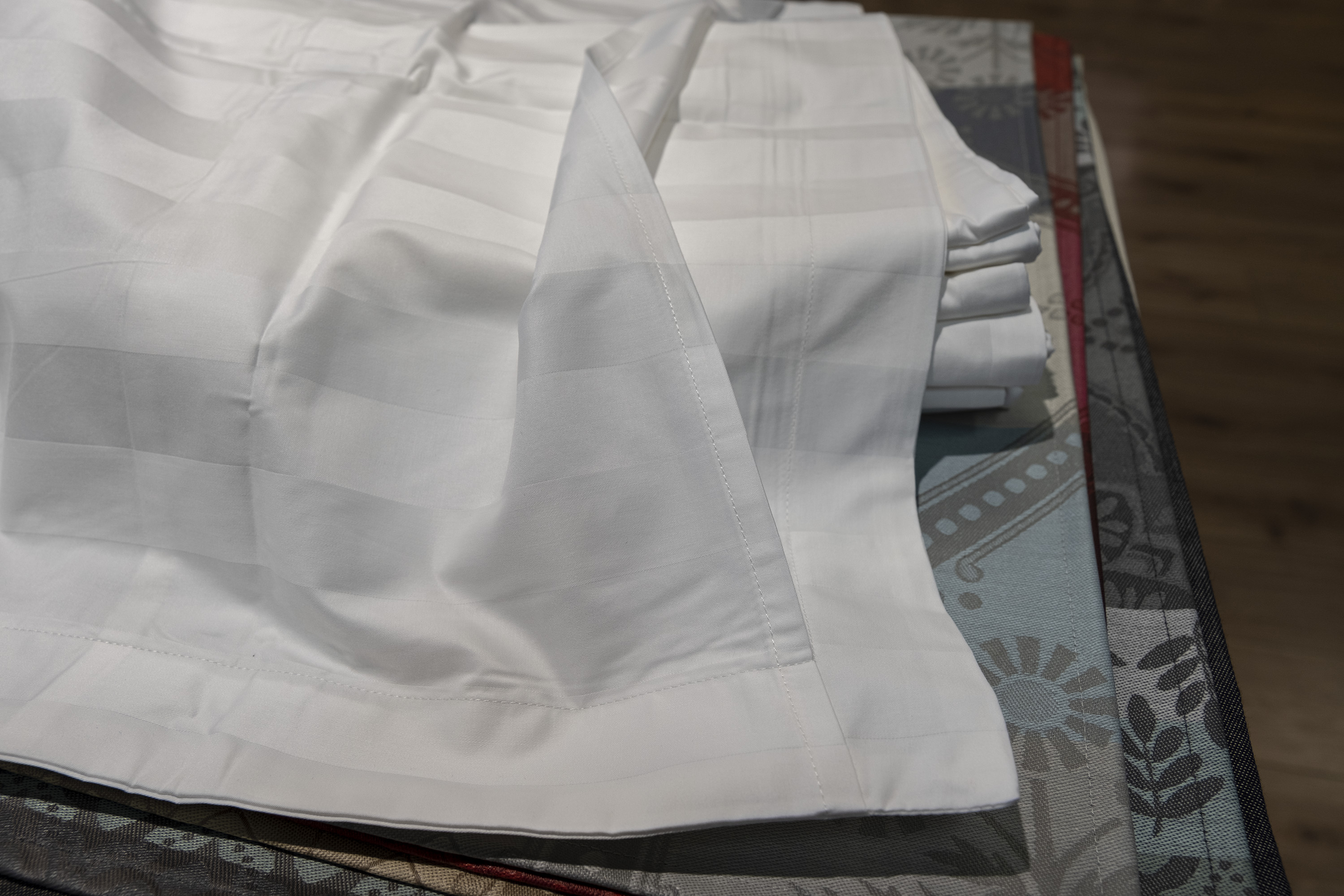 Hvítt koddaver með 3cm röndum. Mikið keypt af hótelum.