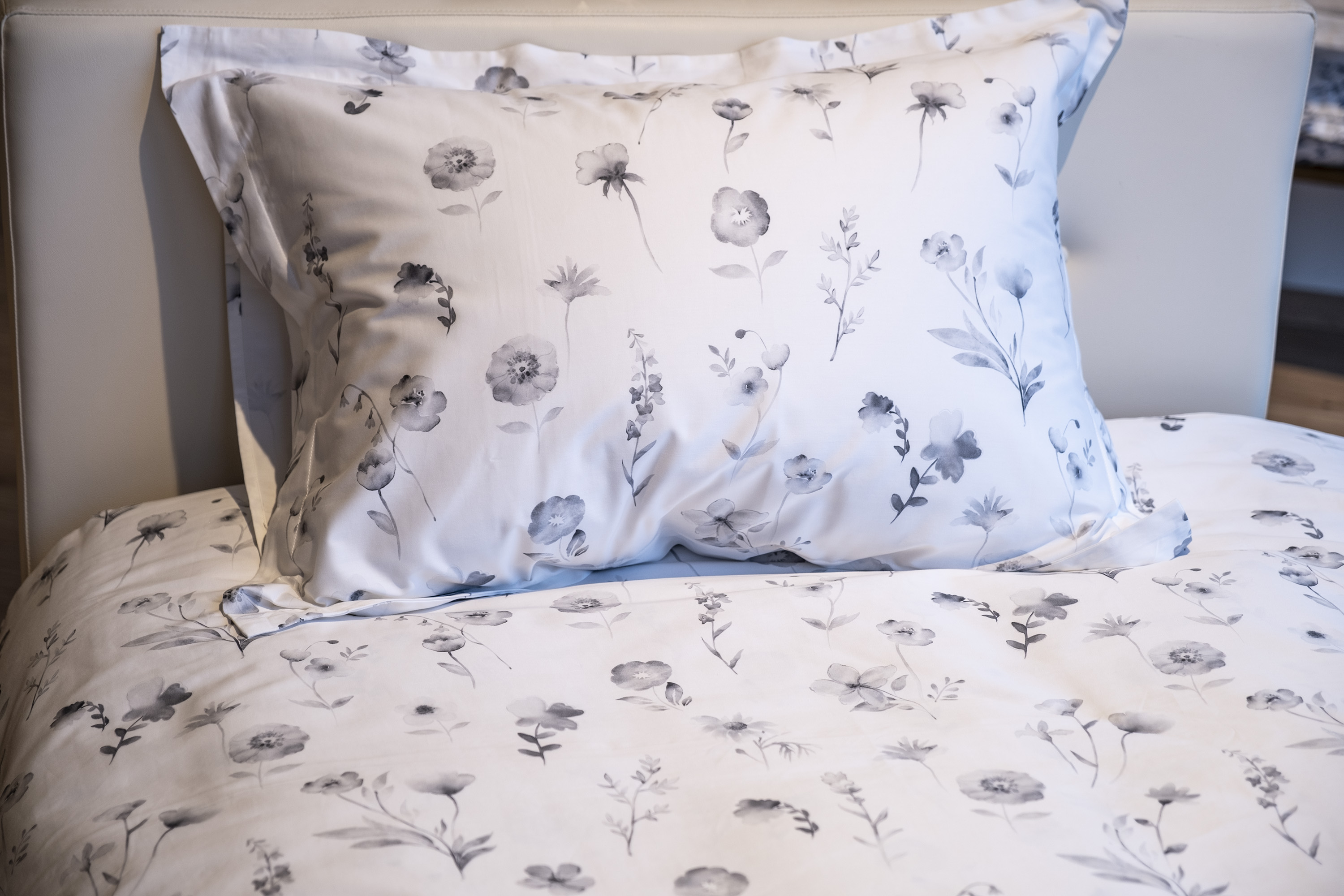 Koddaverið er lokað með vasa og með 4cm kanti á öllum hliðum. Sængurverinu er lokað með tölum. Líka hægt að fá aukakoddaver.